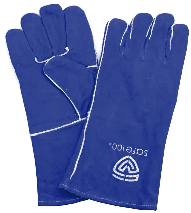 - Construcción Robusta en Piel Azul: Fabricado con carnaza de res de alta calidad, seleccionada por su durabilidad y resistencia natural al calor y a la abrasión, con un largo que ofrece protección completa del antebrazo.